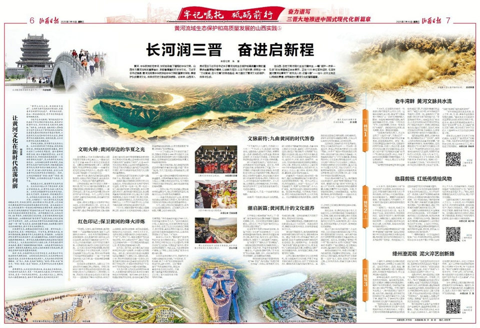 在山西,古老文明與現(xiàn)代生活交融共生,一幅“保護(hù)—傳承—弘揚(yáng)”的壯美畫卷正徐徐展開。正如1936年紅軍東征時,毛澤東面對黃河壯景寫下“數(shù)風(fēng)流人物,還看今朝”——如今,這片土地正以同樣的豪情,續(xù)寫新時代黃河文化的璀璨篇章。