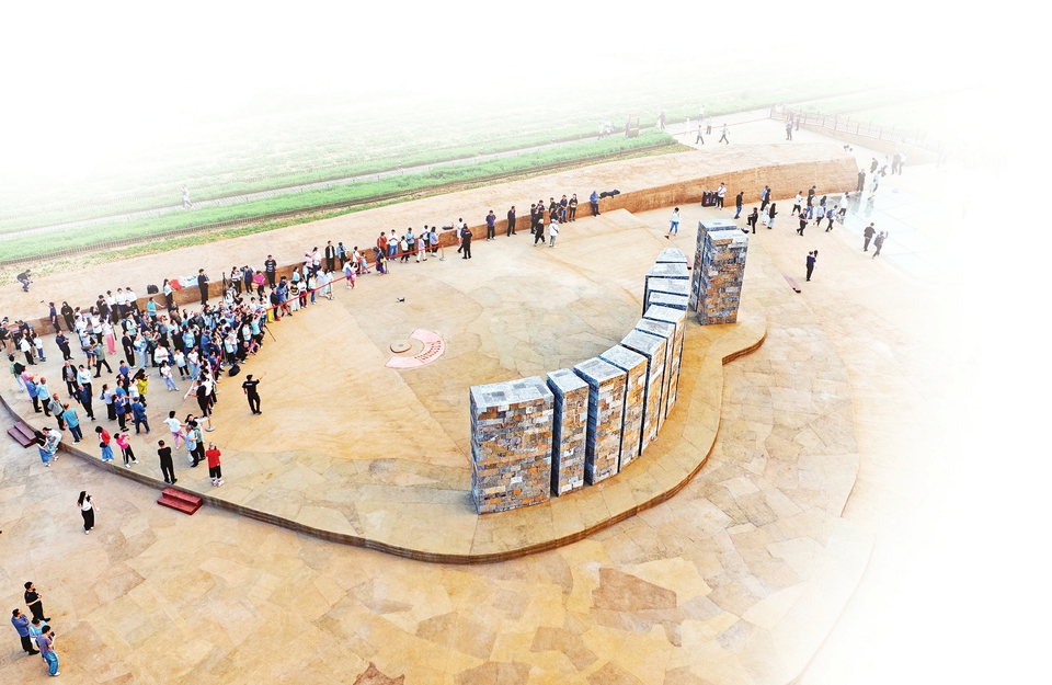 市民在襄汾縣陶寺遺址觀象臺,了解古代天文歷法。李現(xiàn)俊攝