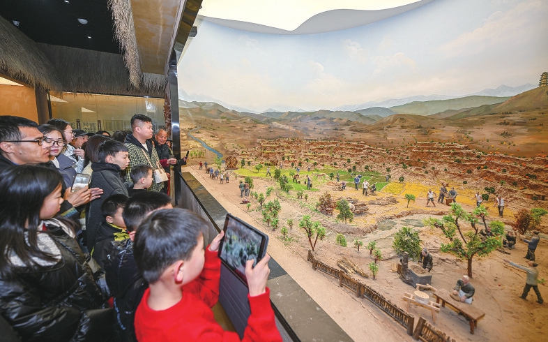 游人在芮城縣西侯度景區(qū)游玩。薛俊攝