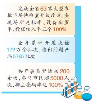 完成全省63家大型農(nóng)批市場快檢室升級改造,實現(xiàn)場所達標(biāo)率、設(shè)備配置率、數(shù)據(jù)接入率三個100%;通過高頻次檢測,實現(xiàn)農(nóng)批市場經(jīng)營主體100%覆蓋;食用農(nóng)產(chǎn)品追溯,入場經(jīng)營戶“一戶一碼”賦碼率100%……