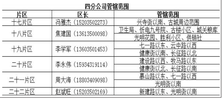忻州熱力有限公司公布22個(gè)供熱片區(qū)及負(fù)責(zé)人電話