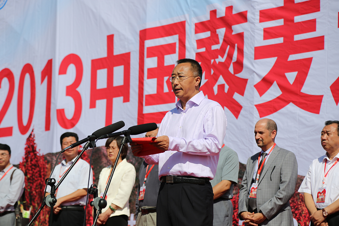 武祥云在靜樂藜麥豐收節(jié)致辭。受訪者供圖