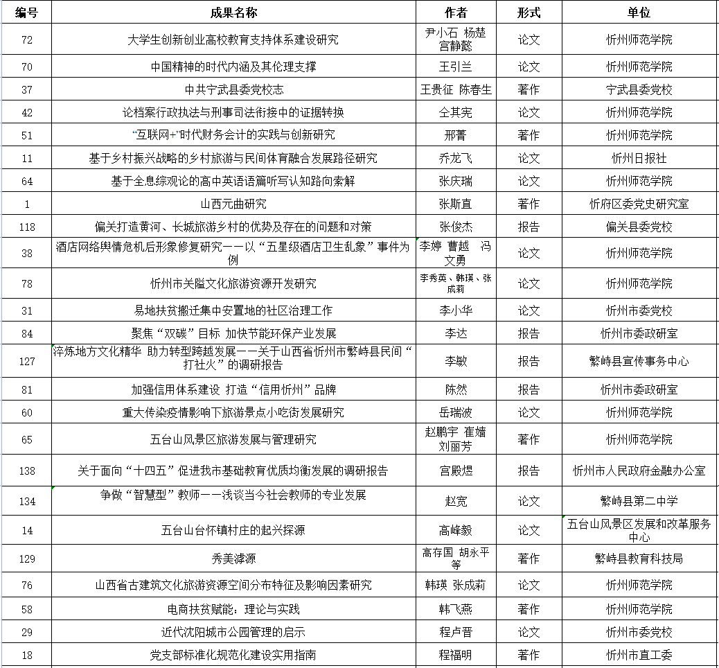 附件:忻州市社會科學(xué)研究優(yōu)秀成果評獎擬獲獎名單