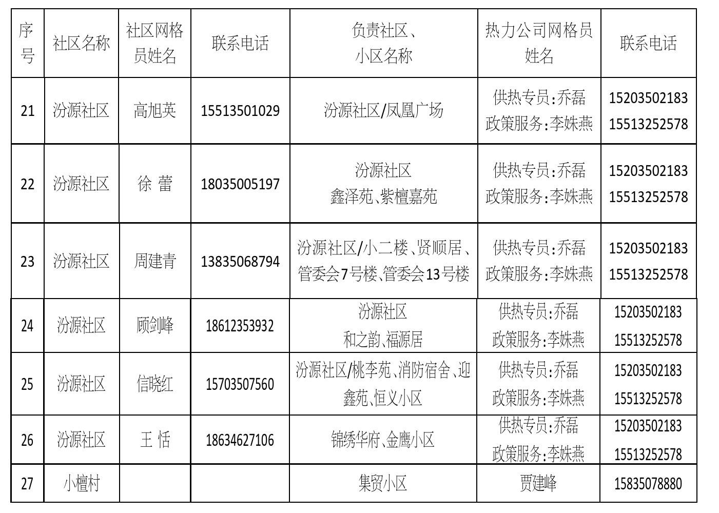 忻州城區(qū)供熱片區(qū)網(wǎng)格員信息公示(一)