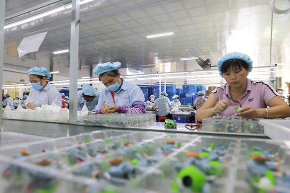 2017年,連樟村建起了一個(gè)913平方米的車間,2018年開始投產(chǎn),主要生產(chǎn)兒童玩具,村民責(zé)負(fù)流水線上的裝配生產(chǎn),成品發(fā)往全國(guó)各地,有些還出口到了海外。通過引導(dǎo)市場(chǎng)資本向農(nóng)村轉(zhuǎn)移,地處粵北偏遠(yuǎn)山區(qū)的連樟村辦起了工廠,不僅帶動(dòng)本地村民出現(xiàn)返鄉(xiāng)潮,連鄰近的外鎮(zhèn)村民也有了更多就業(yè)選擇。