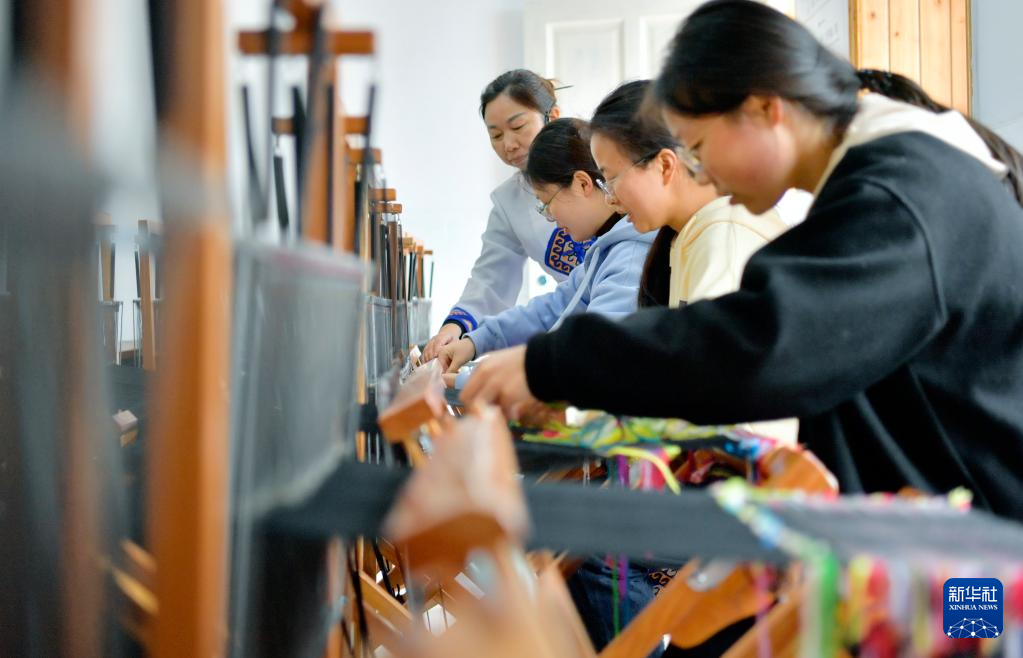 春暖花開(kāi)時(shí)節(jié),湖北省宣恩縣西蘭卡普傳承基地迎來(lái)各地的學(xué)生前來(lái)研學(xué)。學(xué)生們?cè)谶@里了解土家織綿文化、學(xué)習(xí)傳統(tǒng)手工技藝,感受非遺文化的魅力。西蘭卡普是一種土家織錦,色彩鮮明,紋樣美觀,其編織技藝被列入國(guó)家級(jí)非物質(zhì)文化遺產(chǎn)名錄。新華社發(fā)(宋文攝)
