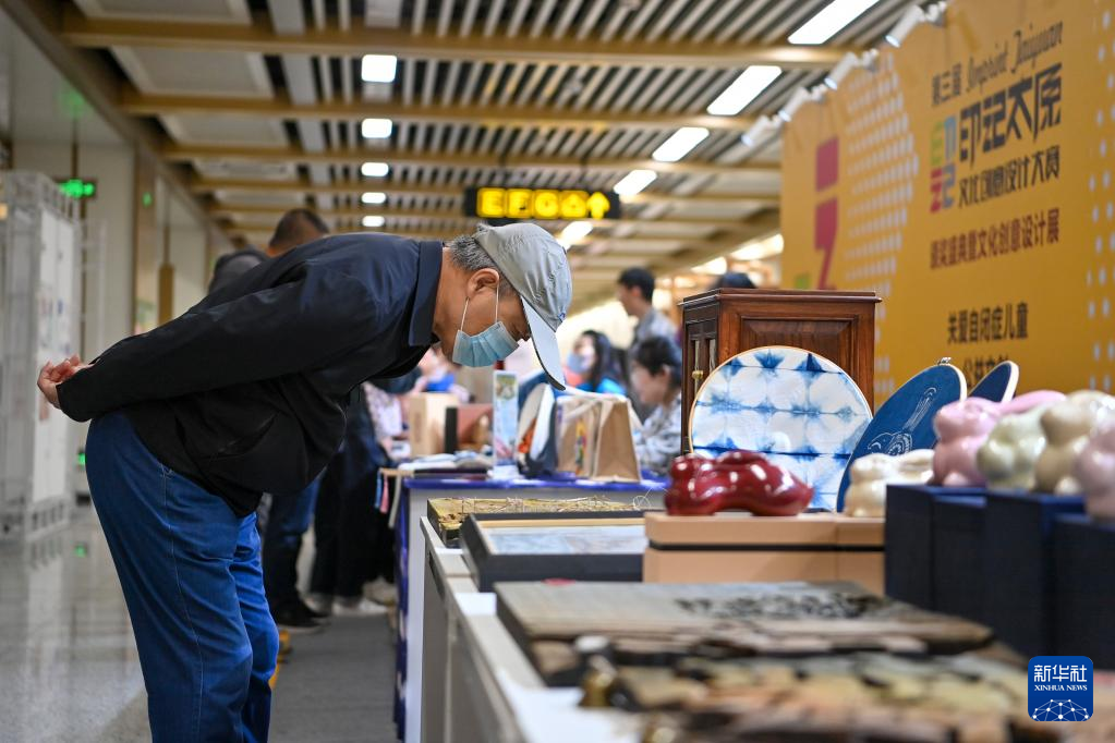 5月9日,在太原地鐵2號線大南門站,市民參觀第三屆“印記太原”文化創(chuàng)意設(shè)計展。