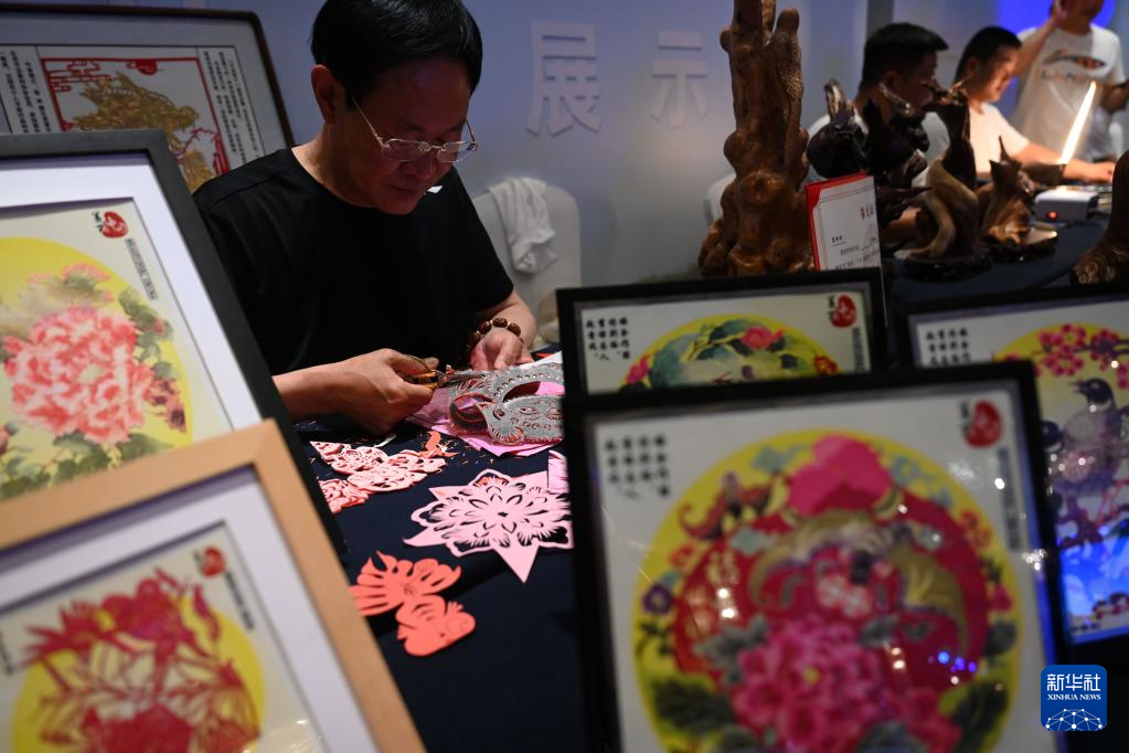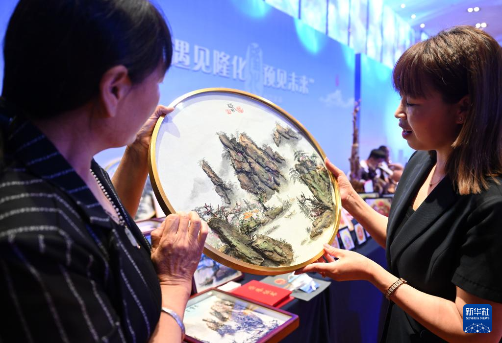 當日,“遇見隆化 預見未來”河北隆化招商推介會在北京舉行。隆化縣就農(nóng)業(yè)、文旅、工業(yè)等特色優(yōu)勢產(chǎn)業(yè)進行推介,當?shù)孛耖g藝人在推介會上展示技藝。新華社記者 金良快 攝