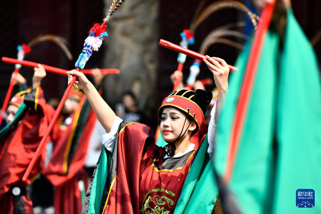 當日,世界互聯(lián)網大會數字文明尼山對話期間,曲阜孔廟再現(xiàn)開城、開廟儀式,并舉辦中華優(yōu)秀傳統(tǒng)文化展演,為中外與會嘉賓和游客呈現(xiàn)了一道文化大餐。新華社記者 郭緒雷 攝