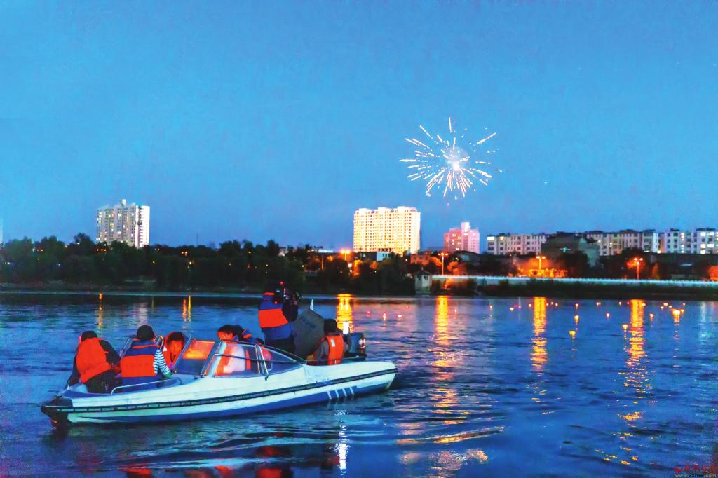 夜幕降臨,一盞盞寄予了人們美好祈愿的蓮花燈被緩緩放入黃河水中,星星點點的燈火在暗夜中飄向遠處。一時間,河中水映燈影,燈耀波光,河面上忽明忽滅的河燈與空中的焰火交相輝映,寄托了人們美好的愿望,傳遞著延續(xù)數(shù)百年的祝福。