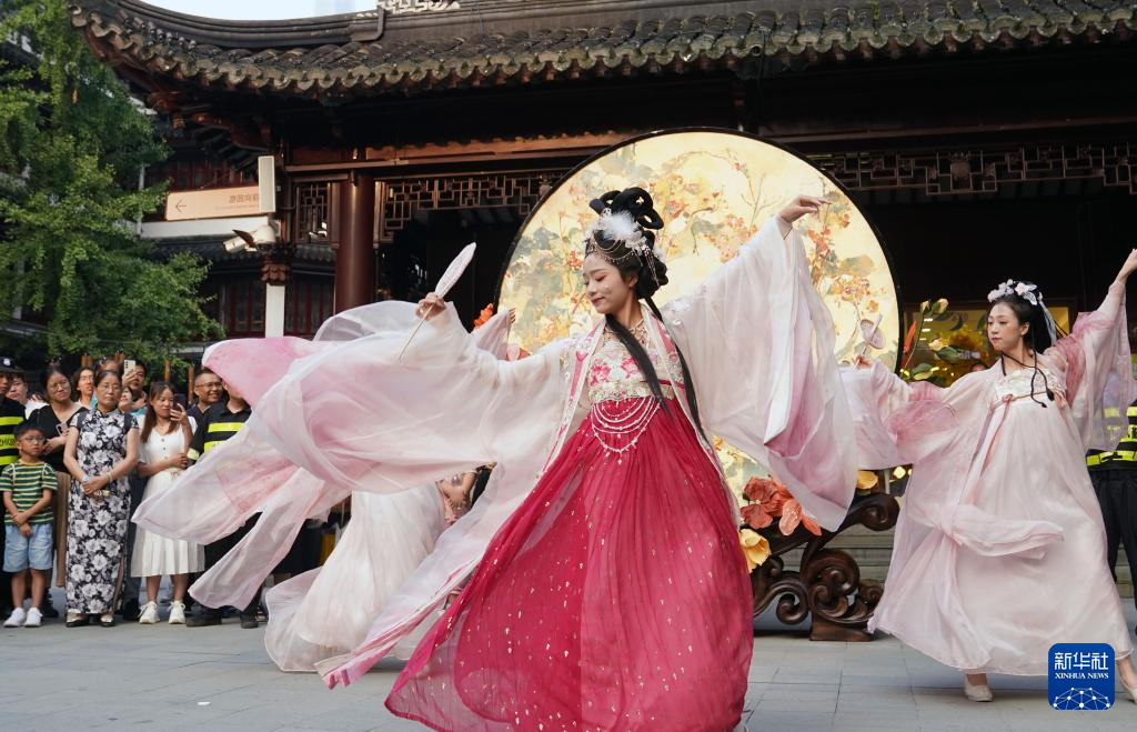 9月17日,演員在豫園商城中心廣場表演國風(fēng)舞蹈。?