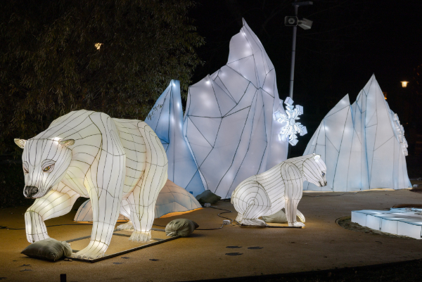 據(jù)介紹,本次彩燈節(jié)將持續(xù)至明年2月24日。除龍年主題造型的大型彩燈外,此次彩燈節(jié)還展出大熊貓、大象、北極熊、松鼠、火烈鳥、孔雀等造型的作品,與穹頂生物館中的動物交相呼應(yīng),旨在呼吁人們重視動物保護,與大自然和諧相處。