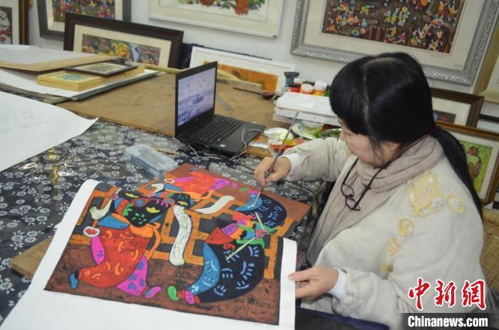 “小時候跟著奶奶學習納鞋底、刺繡,漸漸地喜歡上了繪制各種圖案,我的刺繡在村里也小有名氣。17歲那年,四川美術(shù)學院的老師到村里招收版畫學徒,我就報名了。當時條件很艱苦,很多人不理解,被家里人說不務(wù)正業(yè)。但我就是喜歡這些色彩、線條,一直堅持到現(xiàn)在?!苯徽勚?,李成芝談起她的版畫生涯。