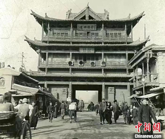 一百多年前,大同古城內(nèi)的鼓樓。大同市古城保護(hù)和修復(fù)研究會 提供