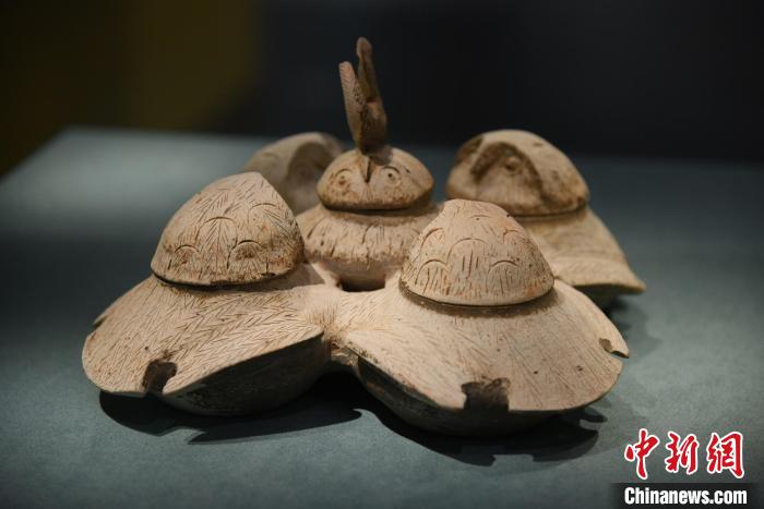 漢代陶鸮形五聯(lián)罐。南漢二陵博物館 供圖