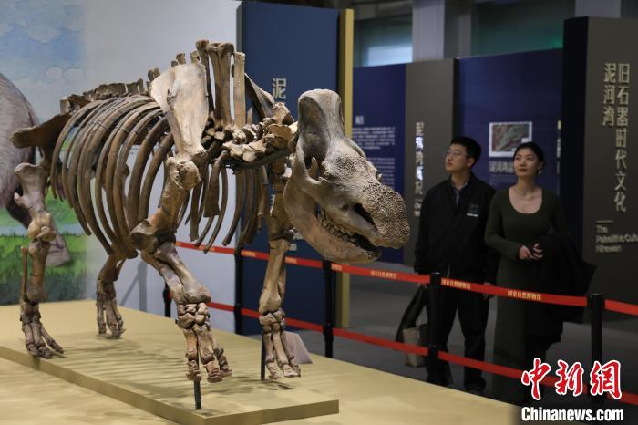 3月12日,正在國家自然博物館臨展一廳展出的“閃耀東方——泥河灣百萬年人類印記”展覽吸引游客觀看。記者 田雨昊 攝
