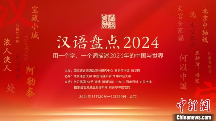 由國(guó)家語(yǔ)言資源監(jiān)測(cè)與研究中心、商務(wù)印書(shū)館等聯(lián)合主辦的“漢語(yǔ)盤(pán)點(diǎn)2024”20日在京啟動(dòng),“用一個(gè)字、一個(gè)詞描述當(dāng)年的中國(guó)與世界”,鼓勵(lì)全民用語(yǔ)言記錄生活,描述中國(guó)視野下的社會(huì)變遷和世界萬(wàn)象。