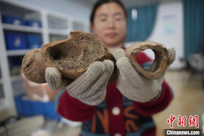 據(jù)中國人民大學(xué)歷史學(xué)院考古文博系從事科技考古研究的吳曉桐介紹,這次發(fā)現(xiàn)的牛、羊、馬、豬等動(dòng)物骨骼,很多有切割、打磨、鉆孔的加工痕跡,屬于骨器半成品,推測這些骨骼被用來制作骨器。