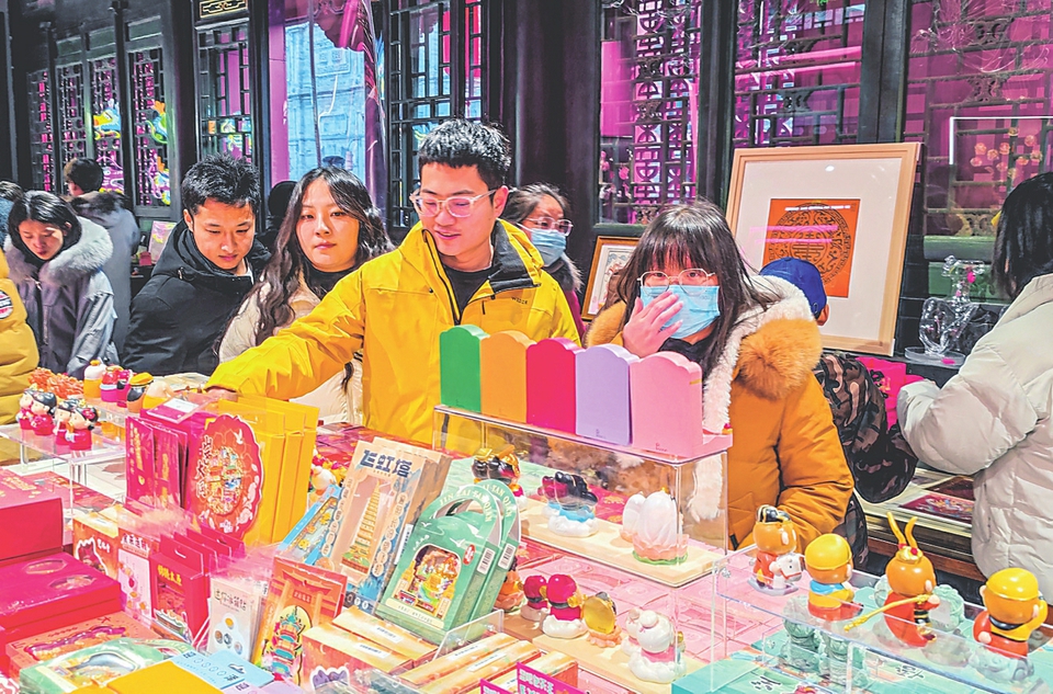 太原古縣城的非遺文創(chuàng)產品吸引眾多年輕人觀賞。