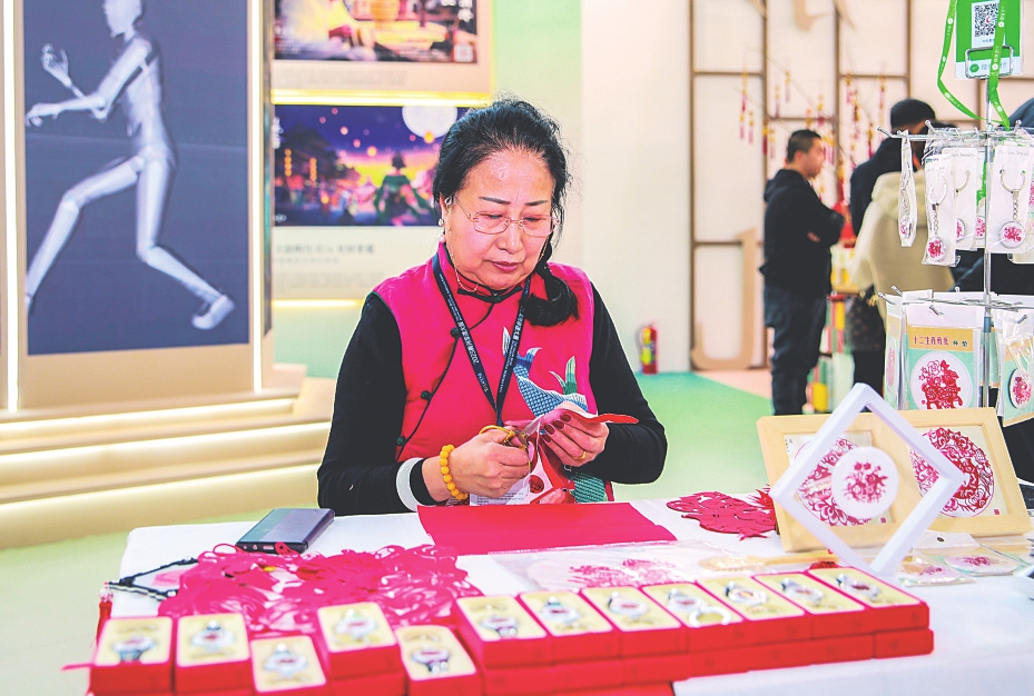 現(xiàn)場展示非遺剪紙。