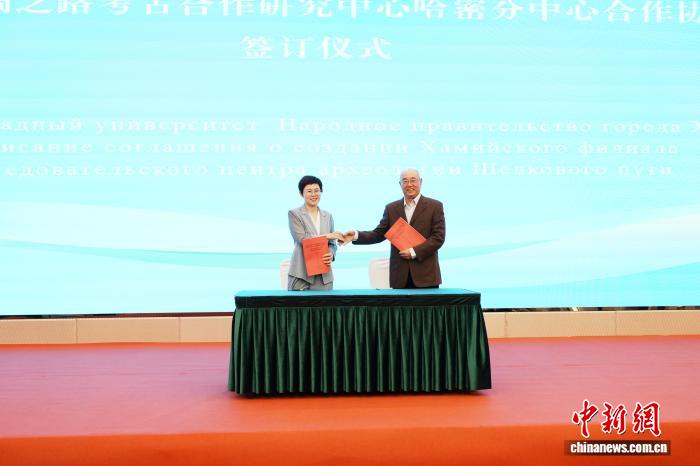 中新網(wǎng)西安9月17日電 (記者 阿琳娜)記者17日從絲綢之路考古合作研究中心獲悉,西北大學(xué)與哈密市人民政府校地全面合作協(xié)議簽訂暨絲綢之路考古合作研究中心哈密分中心揭牌儀式15日在新疆維吾爾自治區(qū)哈密市舉行。