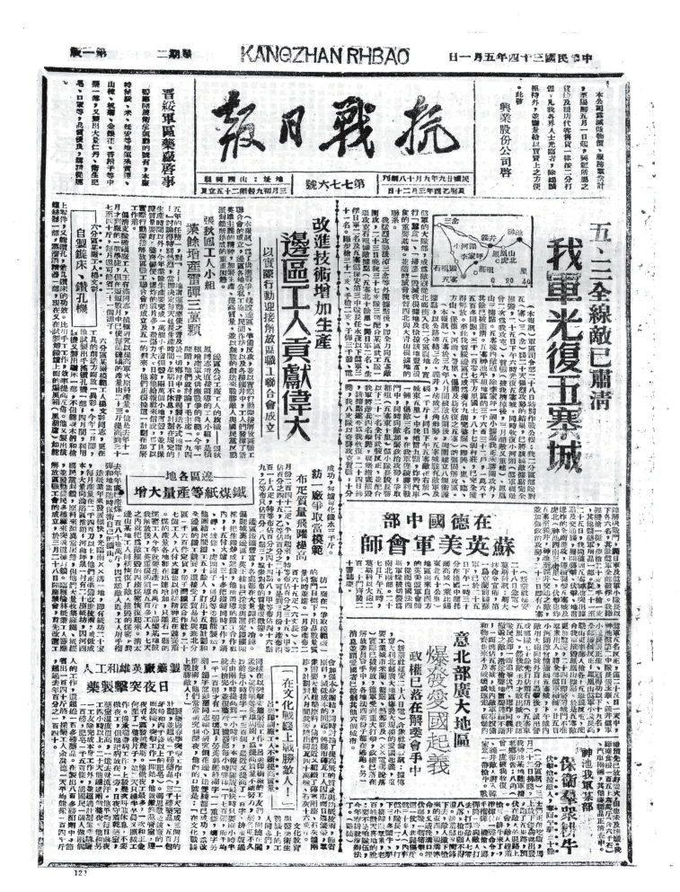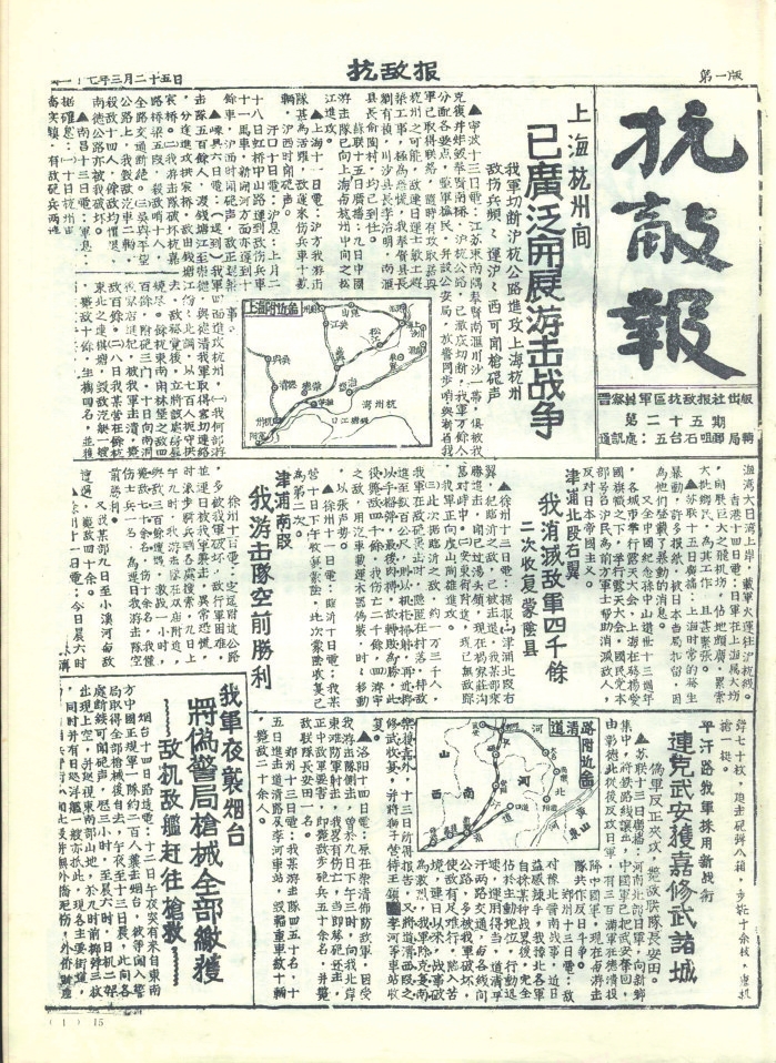 抗戰(zhàn)時(shí)期,忻州既是晉察冀、晉綏兩大根據(jù)地的中心腹地,也是抗戰(zhàn)初期全面抗敵的主戰(zhàn)場(chǎng)。忻州以其地理咽喉、戰(zhàn)役要沖、根據(jù)地核心和人民戰(zhàn)爭(zhēng)典范的多重角色,成為抗日戰(zhàn)爭(zhēng)中抵御日軍侵略、堅(jiān)持?jǐn)澈蠖窢?zhēng)的戰(zhàn)略支點(diǎn)之一。其歷史貢獻(xiàn)不僅體現(xiàn)在軍事上,更彰顯了中華民族不屈不撓的抗戰(zhàn)精神。隨著八路軍平型關(guān)大捷、雁門關(guān)伏擊戰(zhàn)、夜襲陽明堡飛機(jī)場(chǎng)等戰(zhàn)役勝利,1937年11月7日晉察冀軍區(qū)在五臺(tái)成立。12月11日,《抗敵報(bào)》誕生。1940年11月,《抗敵報(bào)》改名為《晉察冀日?qǐng)?bào)》,鄧拓任報(bào)社主任。《抗敵報(bào)》最初在五臺(tái)石嘴村石印,后改鉛印。1938年1月,晉察冀邊區(qū)行政委員會(huì)在河北阜平成立,兩月后,邊區(qū)行政委員會(huì)遷駐五臺(tái)射虎川臺(tái)麓寺,報(bào)社、印刷廠分駐?;垅帧⒏蝮∈欧鹚?。1940年9月18日,晉綏分局機(jī)關(guān)報(bào)《抗戰(zhàn)日?qǐng)?bào)》,伴隨著隆隆炮火聲,在距離忻州不遠(yuǎn)的興縣艱難創(chuàng)刊。自此,那些戰(zhàn)地記者、通訊員甚或普通民眾,有名的,無名的,以個(gè)人名義,以集體名義,在極其艱苦的條件下,用滾燙筆尖秉筆直書,為我們珍存了那些發(fā)生在忻州大地上前仆后繼、可歌可泣的抗戰(zhàn)故事,也讓今天的人們一旦捧讀就會(huì)熱血沸騰。