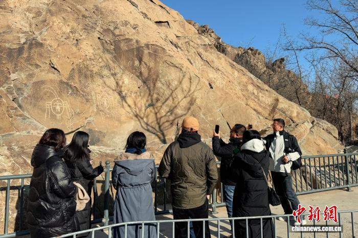 春節(jié)期間,游客在賀蘭山巖畫遺址公園參觀游覽。 中新網(wǎng)記者 李佩珊 攝