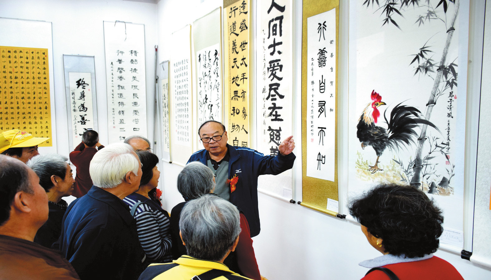 書畫展現場,張啟明與書畫愛好者互動