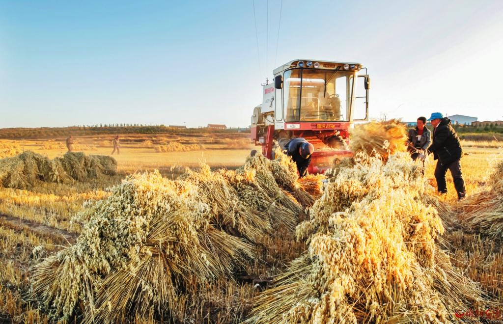 余莊鄉(xiāng)馬營村村民機械化脫粒莜麥