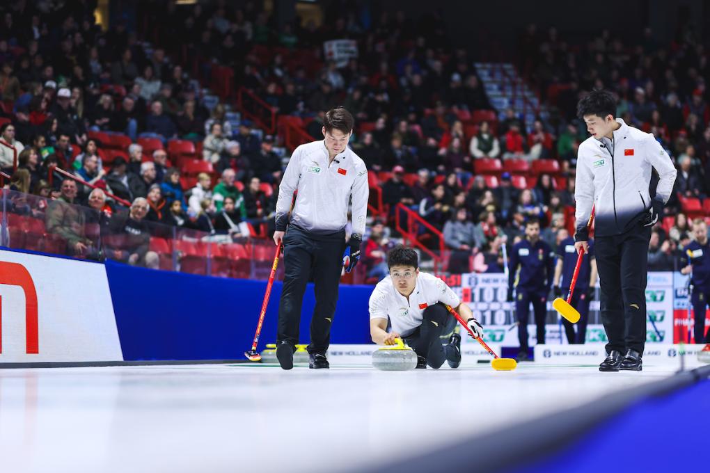 中國隊(duì)在比賽中。圖片來源于世界冰壺聯(lián)合會官網(wǎng)
