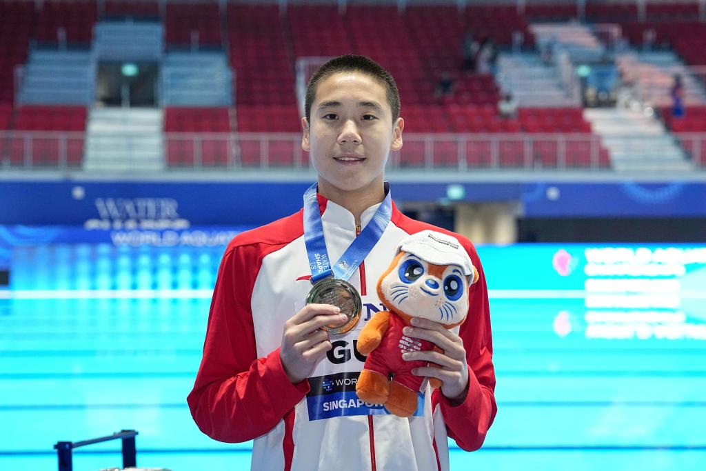 7月21日,郭牧也在頒獎儀式后。新華社記者 薛宇舸 攝 首次參加世錦賽就能站上領(lǐng)獎臺,郭牧也的教練李敏賽后也給予他高度肯定。“這套動作的主題是‘遠征’,意思是出征、去完成使命,體現(xiàn)了牧也這樣年輕人的精神,特別是這是他第一次參加世錦賽?!?/p> 世錦賽跳水項目的比賽將于7月26日開賽,中國跳水隊已于21日上午抵達新加坡并投入適應(yīng)性訓練。 (責任編輯:蔡文斌) |