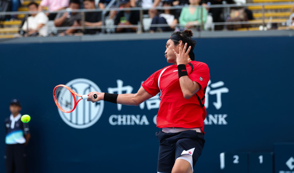 9月25日,辛納在比賽中回球。新華社發(fā)(馬子涵攝)
