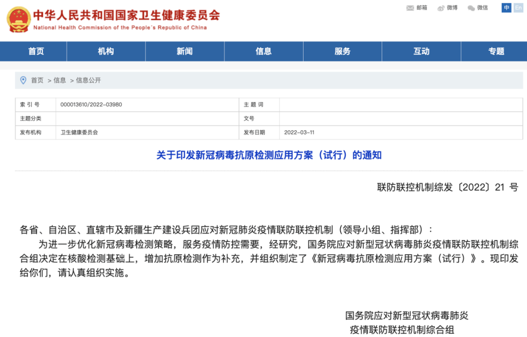 通知指出,為進(jìn)一步優(yōu)化新冠病毒檢測(cè)策略,服務(wù)疫情防控需要,經(jīng)研究,國務(wù)院應(yīng)對(duì)新型冠狀病毒肺炎疫情聯(lián)防聯(lián)控機(jī)制綜合組決定在核酸檢測(cè)基礎(chǔ)上,增加抗原檢測(cè)作為補(bǔ)充。