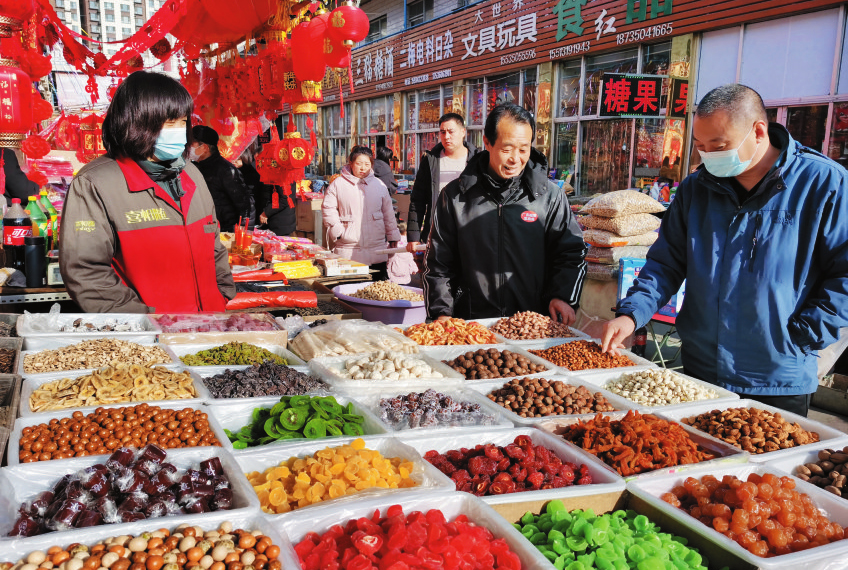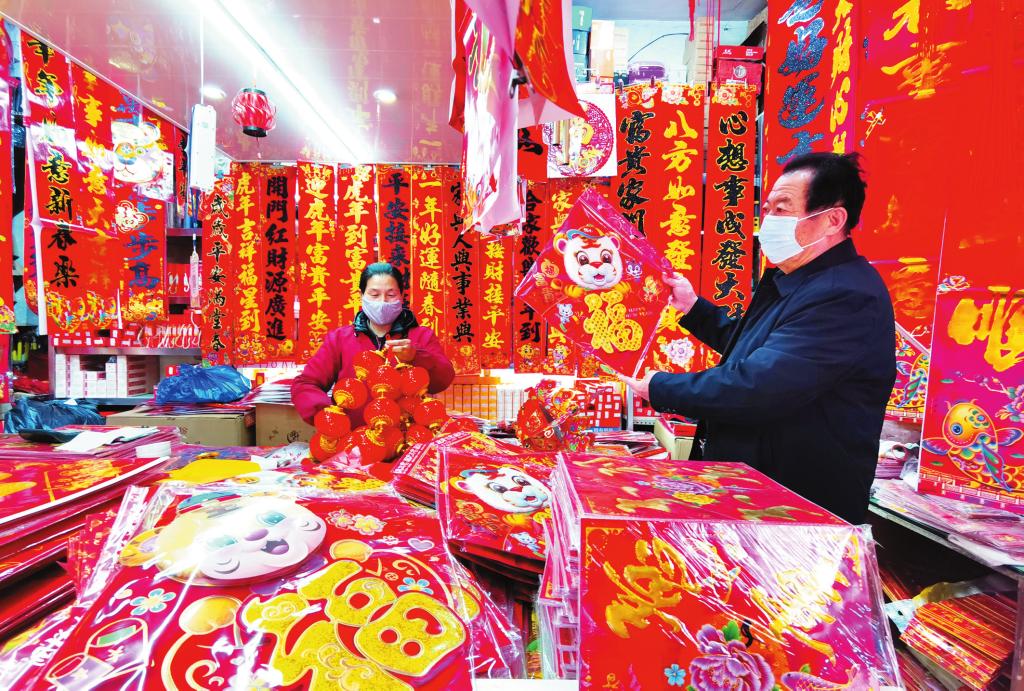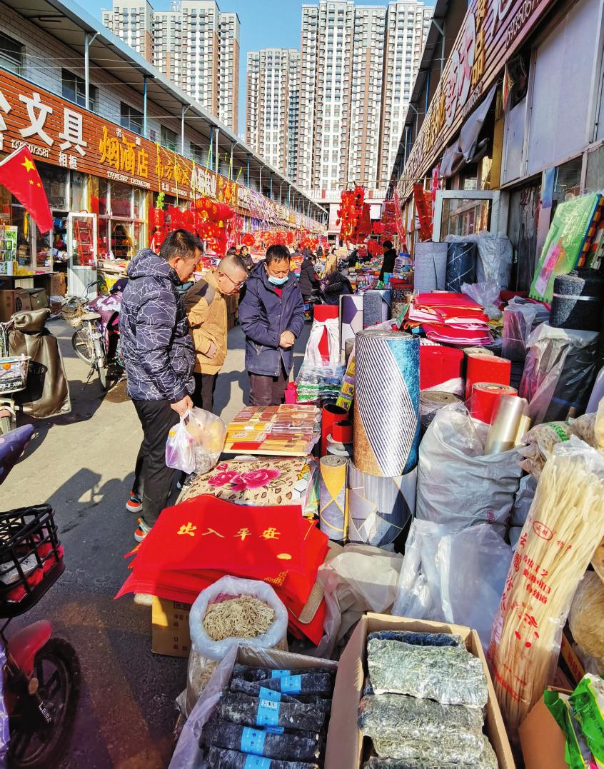 市場內(nèi)各種商品琳瑯滿目,讓人目不暇接。煙酒糖茶、禽、蛋、蔬菜、辦公用品、生活用品,應(yīng)有盡有。一位商戶說:最近受疫情和網(wǎng)購的影響,生意沒有以前好做了,但市民購買熱情依然高漲,進(jìn)入臘月以來,生意一天比一天好了起來。據(jù)了解,市場內(nèi)各商戶認(rèn)真做好疫情防控工作,及時(shí)對場地進(jìn)行消殺,努力營造一個(gè)安全祥和的購物環(huán)境。市場上到處充滿著年味,尤其是紅彤彤的春聯(lián)和喜氣洋洋的福字最為搶眼。(王國棟 攝影報(bào)道)