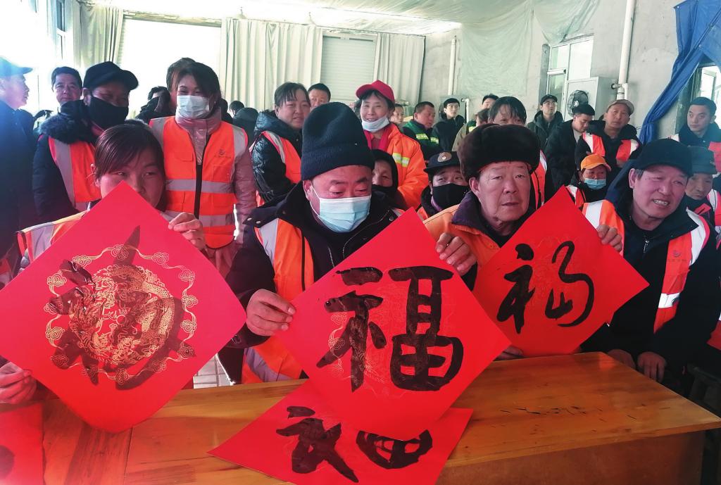 1月19日,民建忻州市委組織書法會員赴靜樂縣為50名環(huán)衛(wèi)和園林工人現(xiàn)場寫春聯(lián),并送上節(jié)日的問候。本報記者 李濤攝