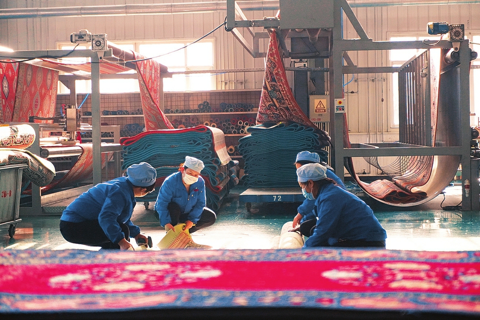雅瑞地毯公司的廠房里,工人正在趕著完成訂單。山西日?qǐng)?bào)記者李家鳴攝