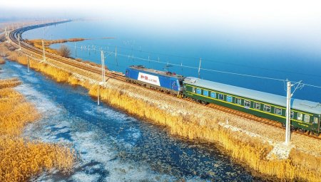 一列長長的火車奔馳在水上,一側(cè)是高聳山巒,一側(cè)是湛藍湖面。放眼遠眺,水天一色,飛鳥掠過湖面,鳥羽金光燦燦,湖水波光粼粼,浪漫唯美的畫面恍若夢境。如今,來運城只需坐上火車去趟永濟,便能讓夢境成為現(xiàn)實。