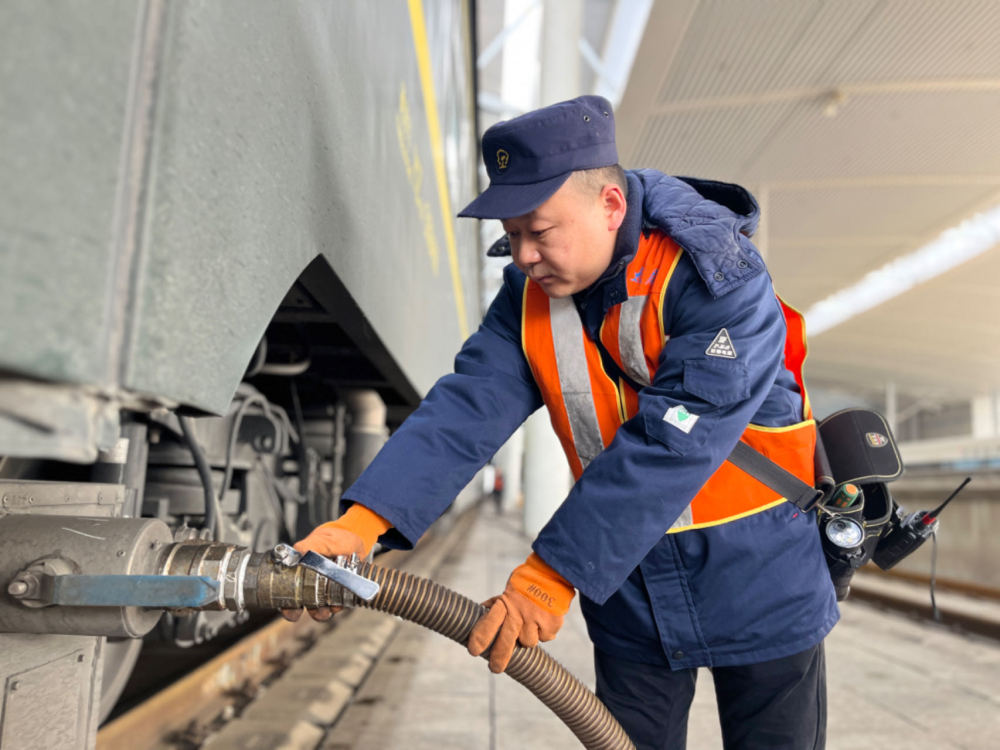 作為山西境內(nèi)唯一的通過車吸污作業(yè)點(diǎn),太原南站吸污作業(yè)點(diǎn)全年無休,承擔(dān)著通過太原南站的普速、動(dòng)車、高鐵的吸污作業(yè)。春運(yùn)期間,吸污工作量加大,除去臨時(shí)加增的吸污作業(yè)任務(wù),每天從早上7點(diǎn)至夜間12點(diǎn),固定有14輛列車需要進(jìn)行吸污作業(yè)。