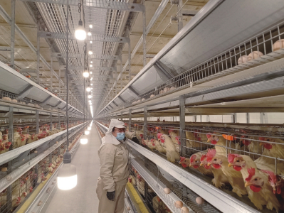 穿上無菌服,陳璐帶記者參觀雞舍。墻面是彩鋼夾芯板,耐腐、防火,保溫性能卓越,有效保障雞舍一年四季溫度恒定。雞籠表面是進口鋁鋅合金涂層,顯著降低破蛋率、污蛋率。雞舍內(nèi)安裝有智能環(huán)境控制系統(tǒng),實時顯示和控制雞舍內(nèi)溫度、濕度、二氧化碳濃度、光照、通風等環(huán)境指標?!耙坏┠骋豁椫笜说陀诨蛘叱^設(shè)定范圍,系統(tǒng)就會啟動各項設(shè)備,直至指標恢復(fù)正常。”陳璐說。