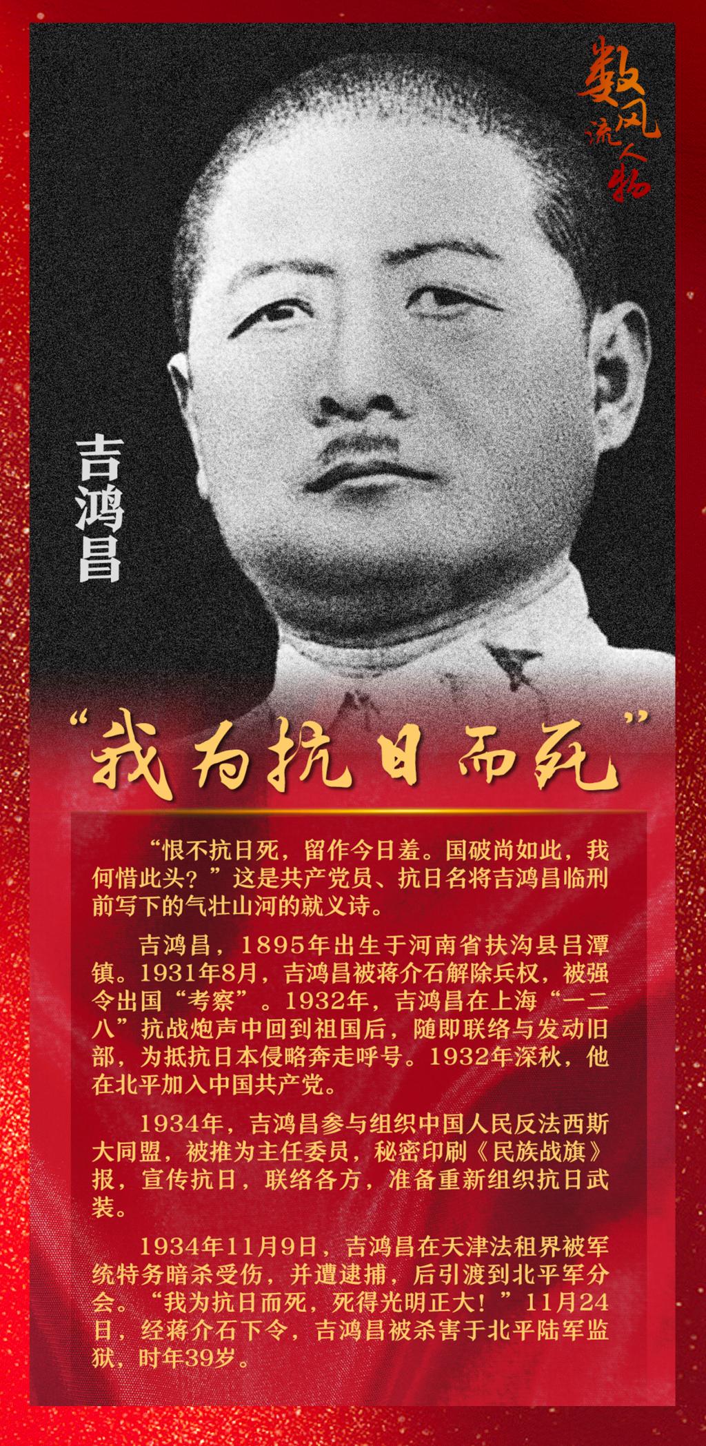 【海報(bào)】吉鴻昌:“我為抗日而死”