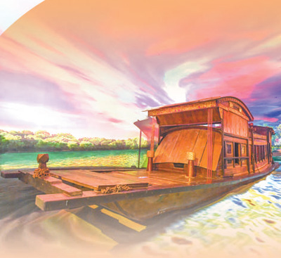 浙江嘉興南湖革命紀(jì)念館內(nèi)的紅船模型。新華社記者  徐  昱攝