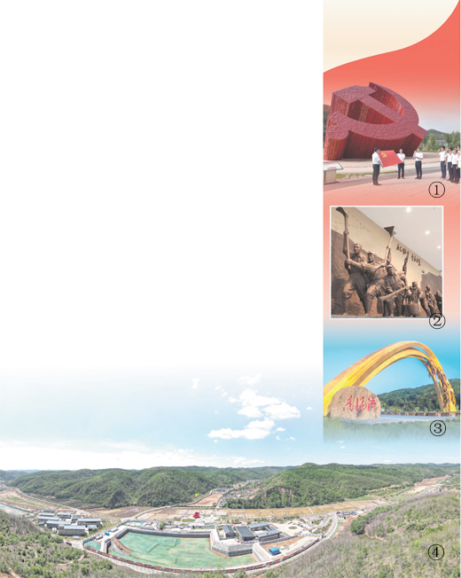 圖①:參觀學(xué)習(xí)團(tuán)隊(duì)在南泥灣黨徽廣場重溫入黨誓詞。祁小軍攝(人民視覺)
