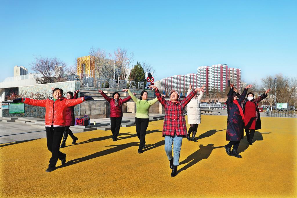 11月24日,舞蹈愛好者們?cè)谑畜w育公園廣場(chǎng)上翩翩起舞。近年來(lái),全民健身理念在我市深入人心,越來(lái)越多的市民從體育運(yùn)動(dòng)的旁觀者變身參與者。 (張存良 攝)