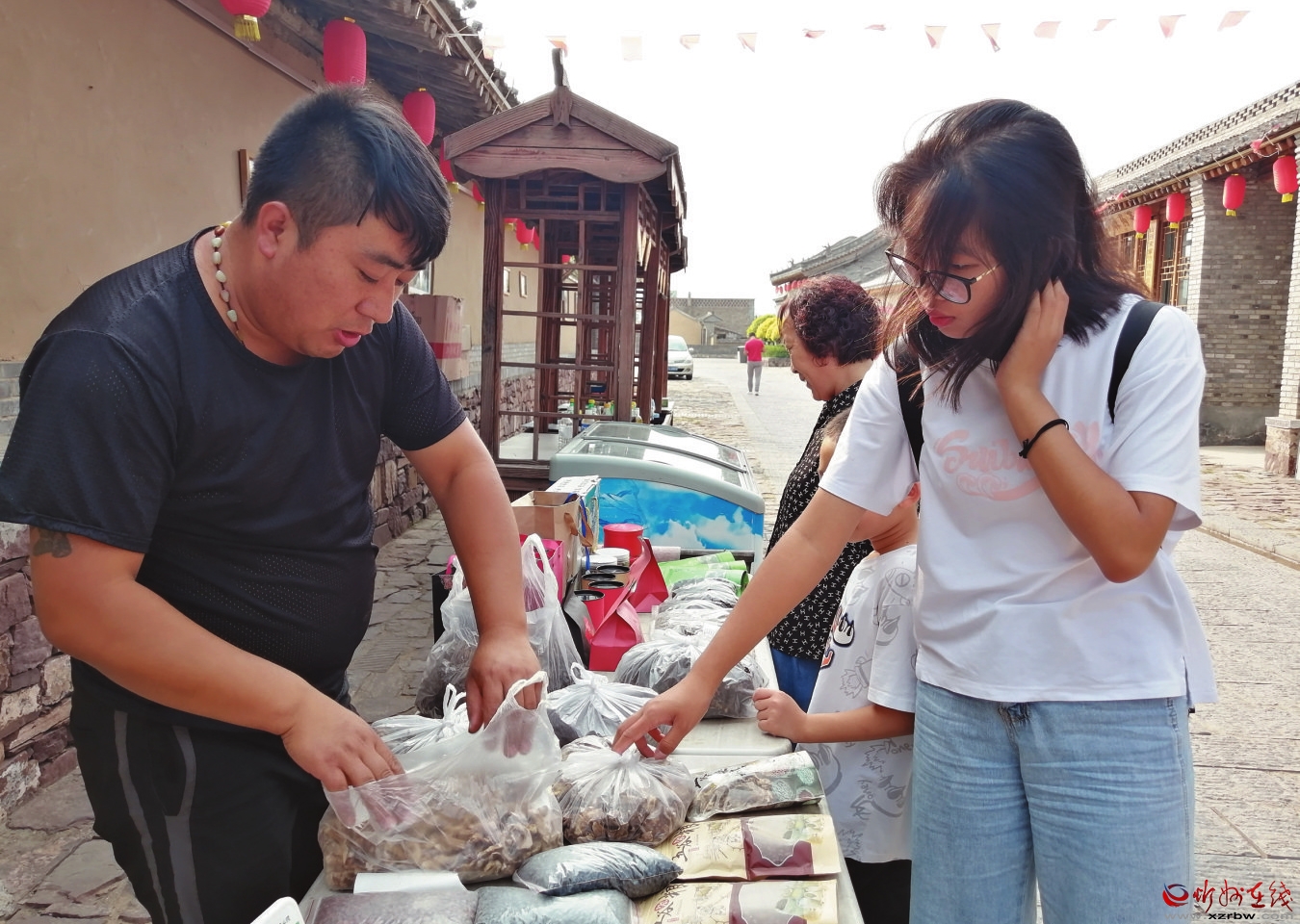 游客在宋家溝村采購?fù)撂禺a(chǎn) 李 濤 攝