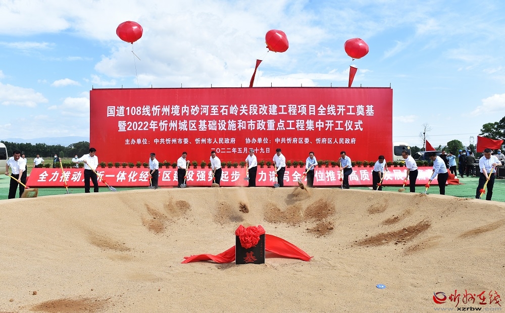 開工儀式后,朱曉東、李建國等市領導相繼為國道108線改建工程項目和忻州師院附中、附小校區(qū)建設項目培土奠基。