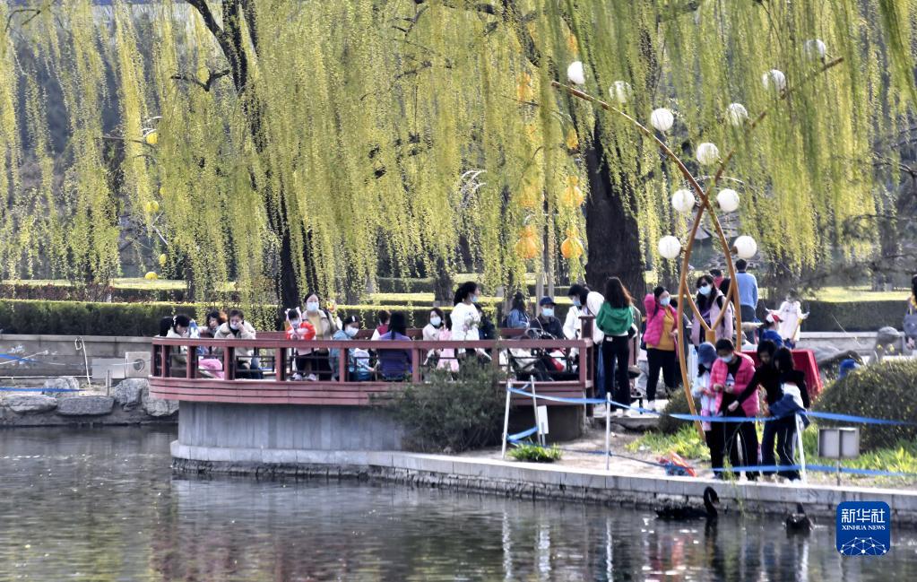 4月4日,市民在豐臺(tái)區(qū)世界花卉大觀園內(nèi)休閑踏青。(新華社記者 李欣 攝)