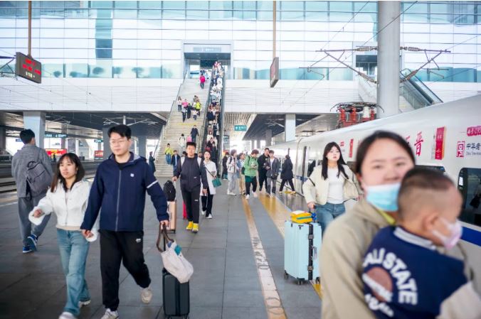 假日期間,太原局集團(tuán)公司跨省客流主要集中在北京、天津、上海及西安方向,省內(nèi)以大同、運(yùn)城方向的旅游客流居多。為保障旅客順利出行,太原局集團(tuán)公司每日增開太原、大同開往北京方向高鐵動車5對,太原往返大同、臨汾、運(yùn)城方向的動車組列車5對,增開太原往返介休、臨汾、侯馬及大同往返包頭、永濟(jì)方向普速旅客列車9對,滿足旅客不同的出行需求。