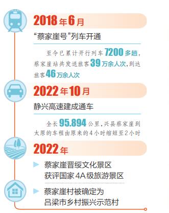 和王先生一樣,近年來,很多游客選擇乘坐火車到蔡家崖旅行,而蔡家崖的村民們很多會(huì)乘坐火車到外地上學(xué)和工作。據(jù)蔡家崖火車站值班站長蔣偉介紹,自2018年太原至蔡家崖的列車開通以來,已累計(jì)開行7200多趟,該站發(fā)送旅客39萬余人次,到達(dá)旅客46萬余人次。