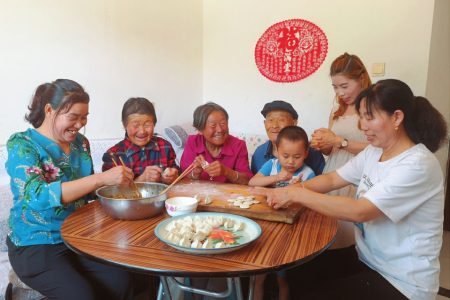 鄰居們聚在一起包餃子。