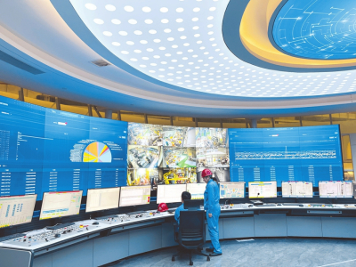 太鋼精密帶鋼公司智慧化集中控制中心,屏幕上實(shí)時顯示車間的能源消耗和安全生產(chǎn)情況。本報記者李學(xué)林?jǐn)z